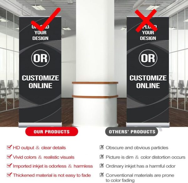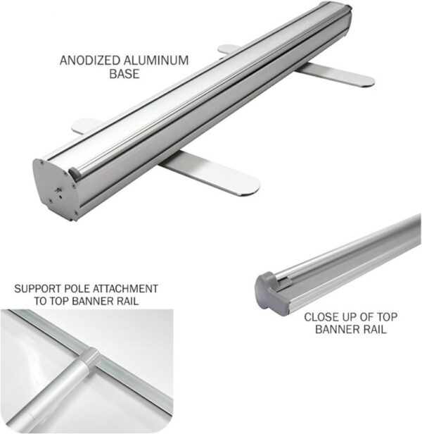 Our 33″ Economy Retractable Banner Stand is the perfect light weight, portable solution for any trade show /exhibit display. With simple, easy to use directions, the banner stand can be assembled in minutes. Featuring a telescopic pole, the banner height can be adjusted anywhere between 34″ and 78″, giving you maximum versatility. When not in use, your banner graphics are safely stored inside the anodized aluminum casing for future use. Order now and receive the portable traveling bag at no additional charge!